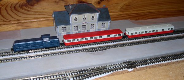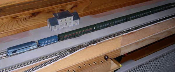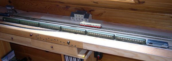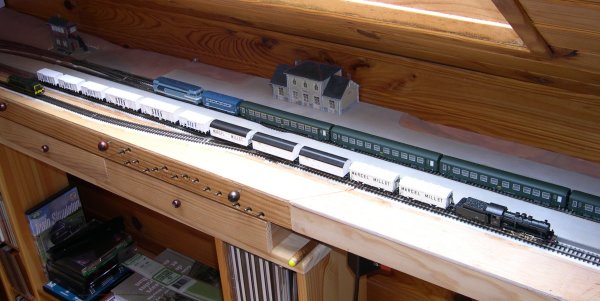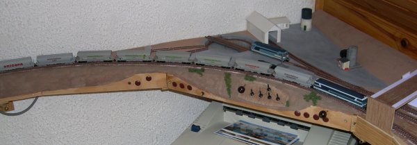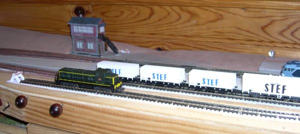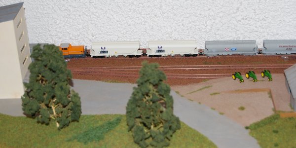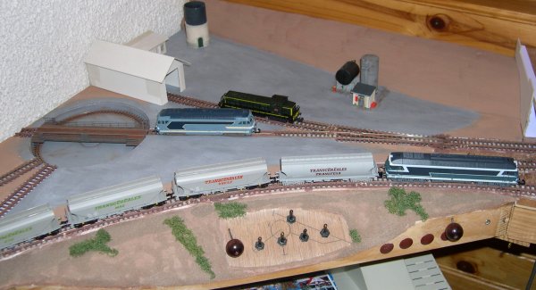 Le locotracteur manoeuvre quelques wagons (Minitrix & Artrain) |