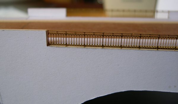 Reprise des travaux sur le pont séparant la gare de l'annexe traction par la pose des rambardes. | ![]() |