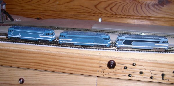 BB63000 Roco, une de mes bonnes à tout faire Même si les phares sont disproportionnés, ainsi que les trompes, j'adore ce modèle et sa conduite. |