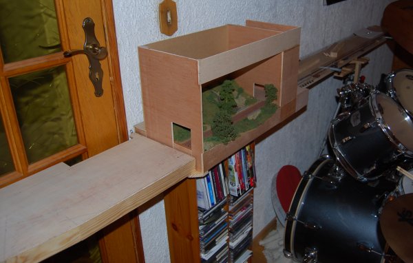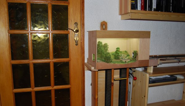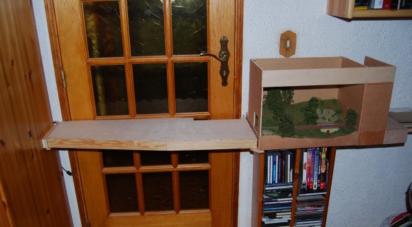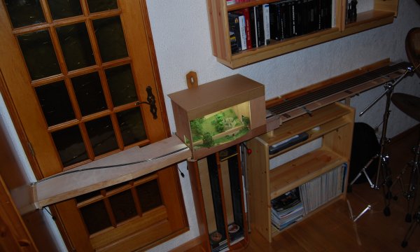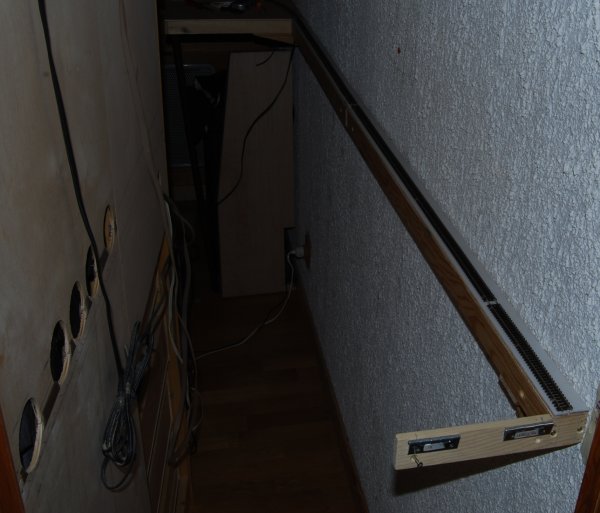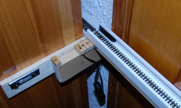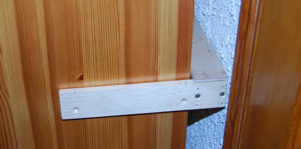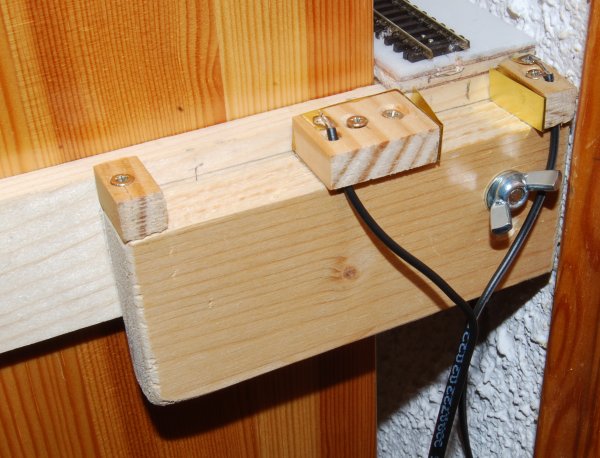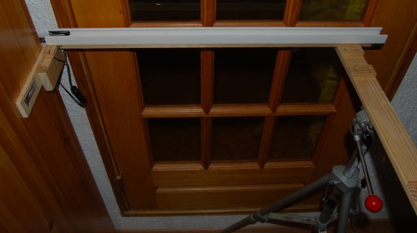 Pour une cassette courte, un simple pied d'appareil photo suffit, c'est léger et rapidement amovible Pour les cassettes plus longues (1,30 mètre) je fixerai un support de l'autre côté de la porte. |