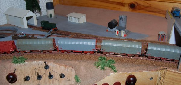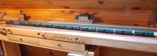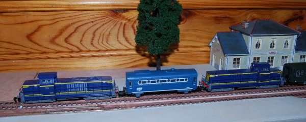 Deux 040 DG Piko encadrant un fourgon chaudière vont enlever le train du soir | ![]() |