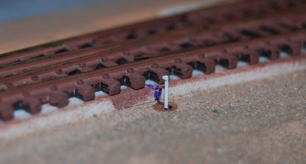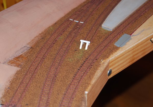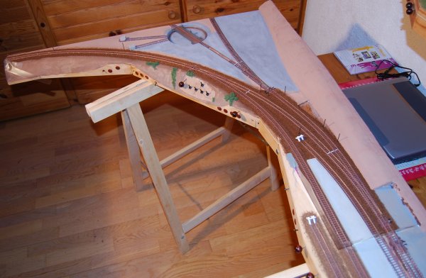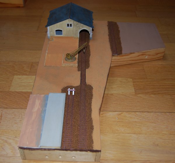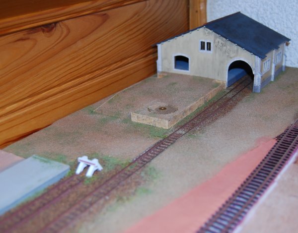 Pose du ballast et début de flocage des sols sur le petit module de la halle |