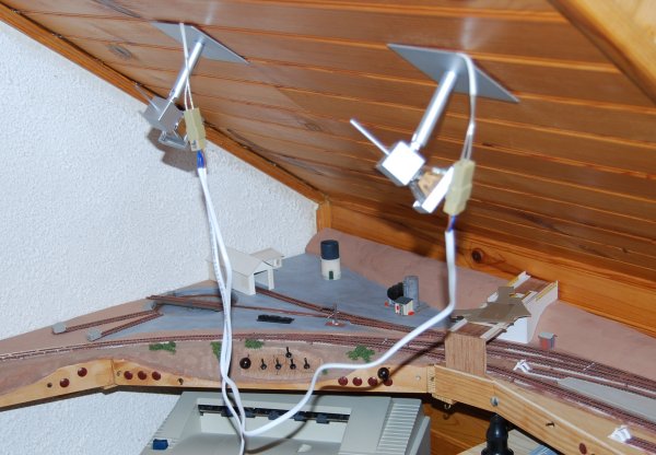 Pose provisoire des spots pour l'éclairage du réseau | ![]() |