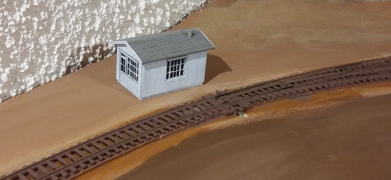 Juillet 2017. Construction d'un petit poste d'aiguillage (Architecture et Passion) pour gérer l'évitement. |