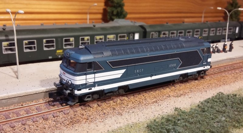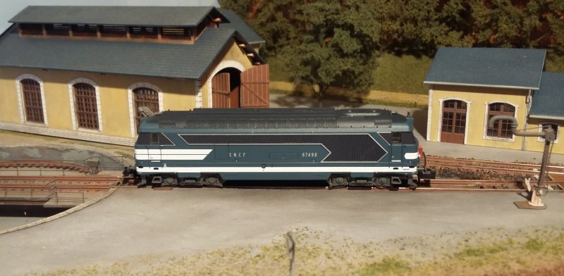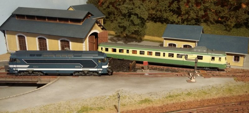Toujours avec du matériel de Pascal, mais cett fois beaucoup plus à l'Ouest ! La locomotive, de petite taille, est sonorisée avec une bonne qualité de son. Bluffant ! |