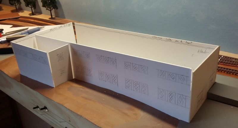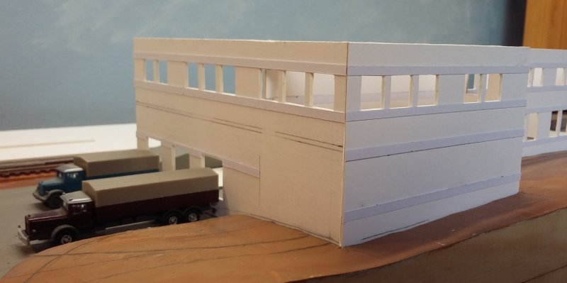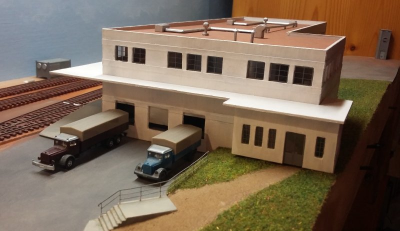 Essai "à blanc" pour vérifier que tout est conforme au plan J'ai inversé l'aile avancé du bâtiment en le passant à gauche car de ce côté les camions disposent de plus de place pour manoeuvrer La façade étant plus large, j'ai aussi ajouté une porte d'accès au chargement supplémentaire sur ce même côté |