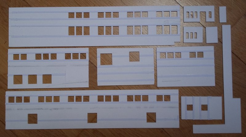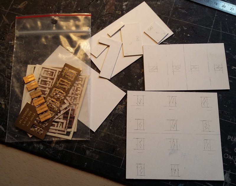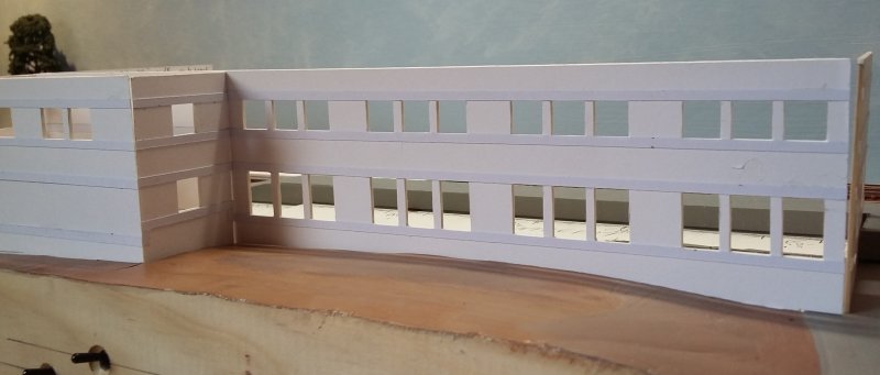 J'ai figuré un peu de relief sur les murs en ajoutant des bandelettes de carton fin pour casser la monotonie des façades |