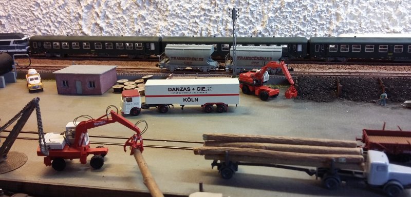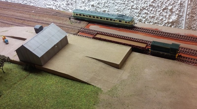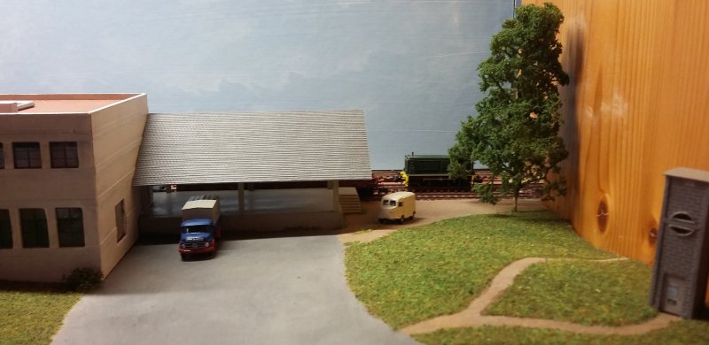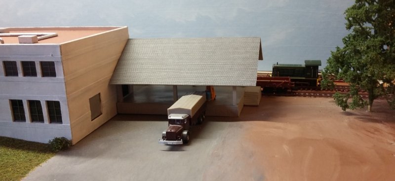 Démarrage de l'aménagement d'un des modules de l'extension Je voulais un bâtiment qui me permette de justifier de plusieurs types de wagons et de courant de trafic Je suis donc revenu revenu à une solution plus simple avec un seul grand entrepôt On peut ainsi présenter devant le quai des plats, des fourgons, des réfrigérants, etc... |