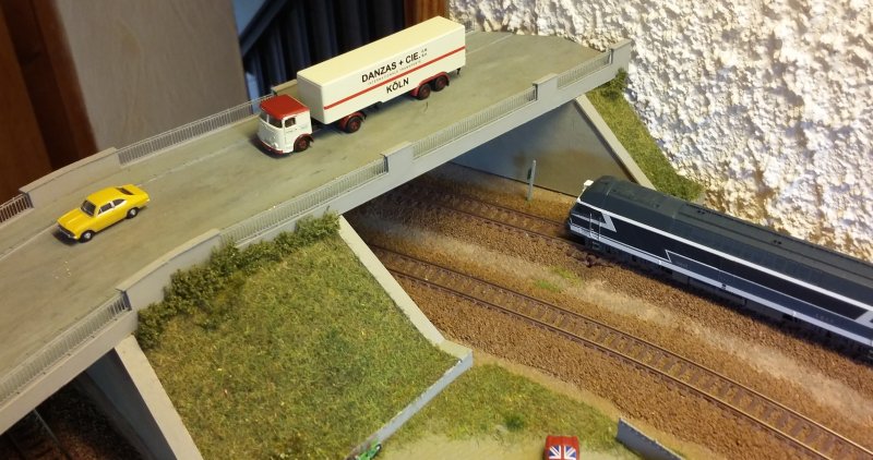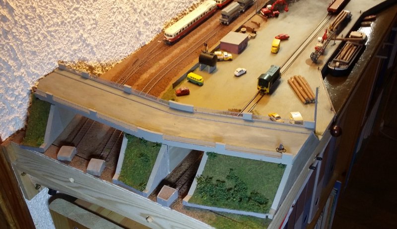 Dans sa nouvelle configuration le côté gauche du pont est maintenant visible Réalisation des piles de pont manquantes. |