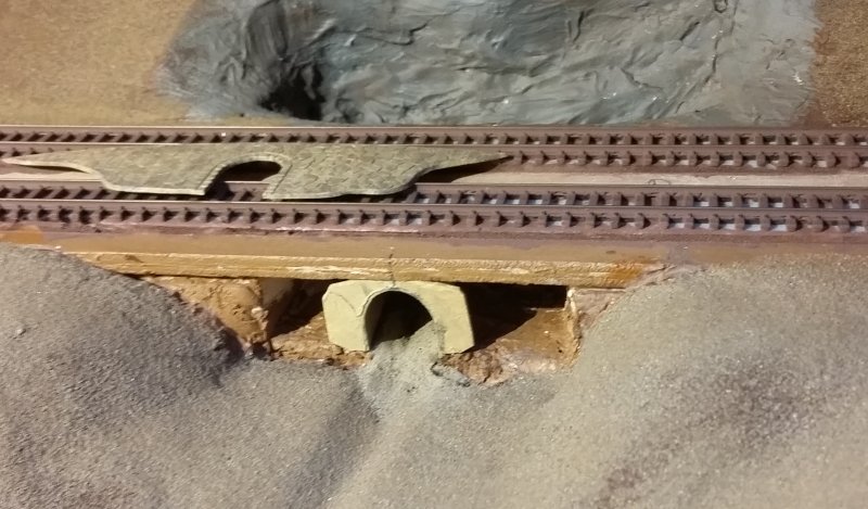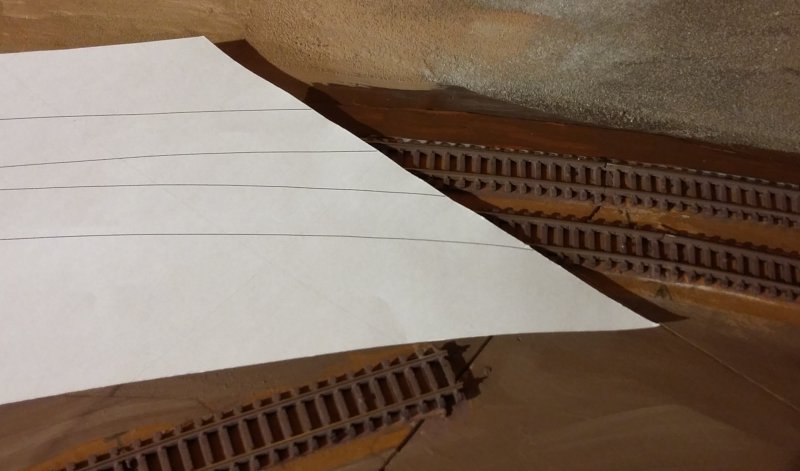 Une toute petite erreur sur le plan à des conséquences sur le tracé de la voie Une simple erreur de 6mm et le croisement des convois avec des voitures longues posent problème... De l'intérêt de bien tester avant de passer au ballastage ! L'erreur est maintenannt corrigée |