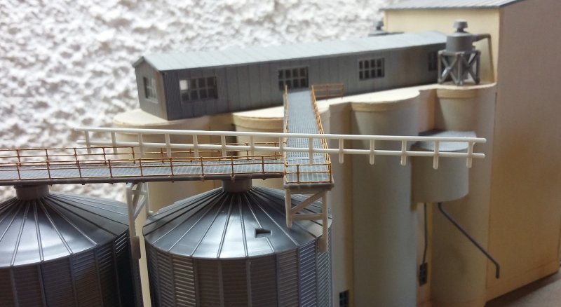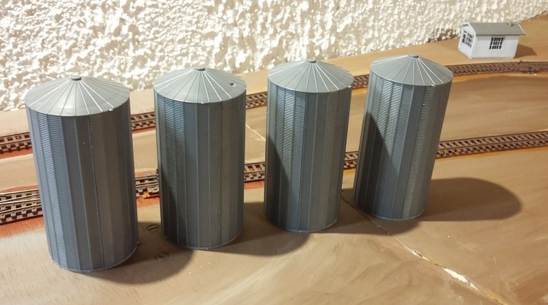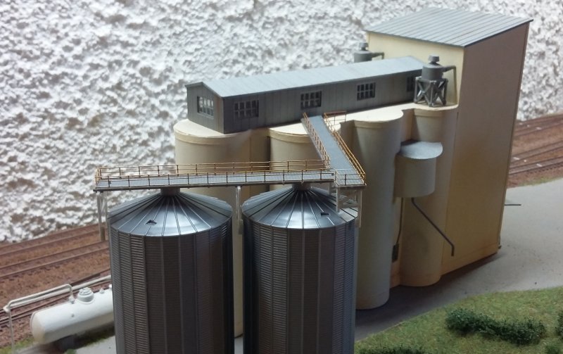 Avec l'abandon de l'usine d'aliment pour animaux, je recycle mes silos en réalisant une petite extension au batiment existant J'ai maintenant une capacité d'accueil de 22 wagons céréaliers sur le site, le nombre de silos doit donc être aussi plus important pour rester en cohérence. J'ai totalement refais les rambardes en laiton photodécoupé. Celles d'origine étaient vraiment trop grossières... |
