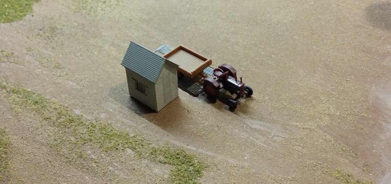 02/11/2017. On revient sur le réseau avec les deux bâtiments et le silo qui remplacent l'usine d'aliment pour bovins que je voulais figurer à l'origine à cet endroit. Avec une emprise plus modeste et plus réaliste, voici d'un petit négociant en engrais, semences et petit jardinage. |