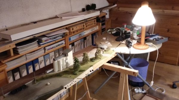 L'herbe et les principaux éléments de décor sont en place, et je pense que ce sera tout en cette fin d'année. Joyeux Noël et à l'année prochaine pour la suite de la réalisation du réseau. |