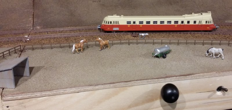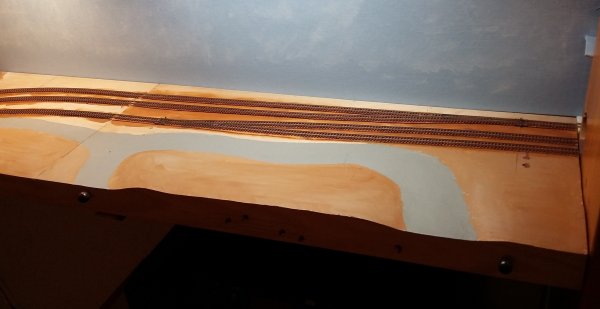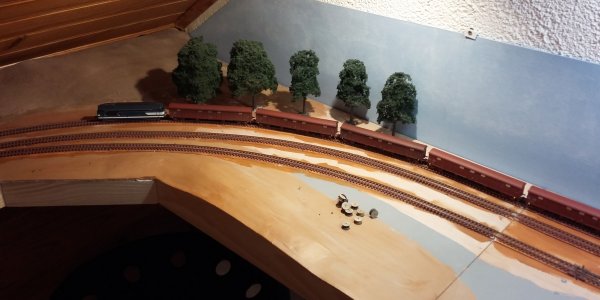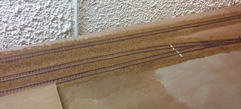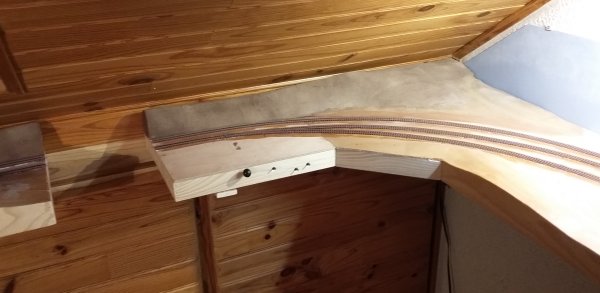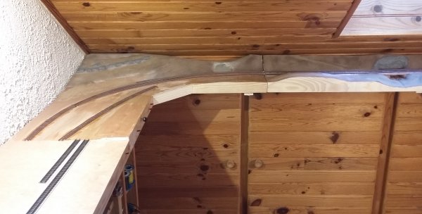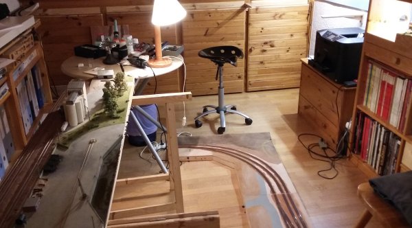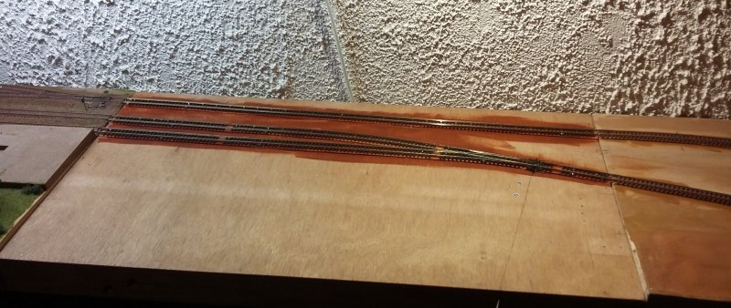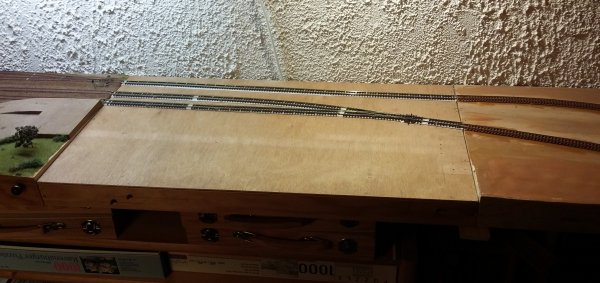 Le dernier virage... Les voies du dernier petit module droit doivent encore être posées C'était prévu puisque ce module était déjà en place avant, avec un plan de voie différrent, il faut donc le refaire |