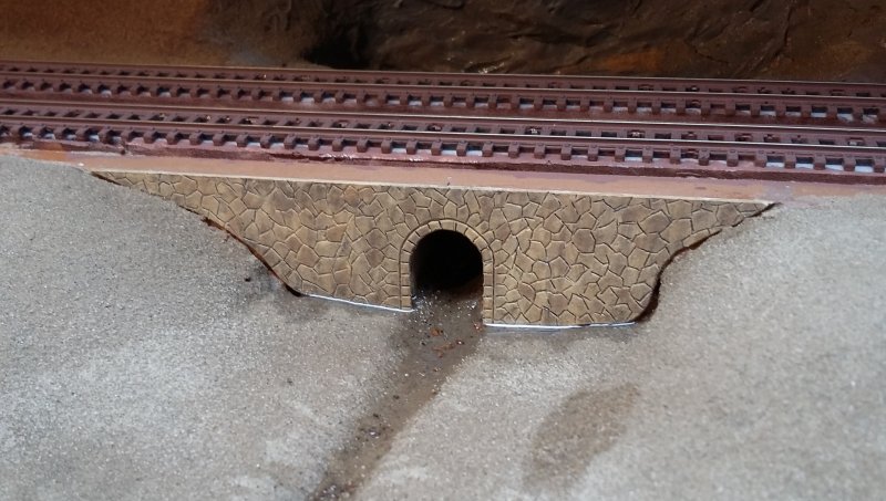 Le mur est en Forex gravé et peint en humbrol beige 103 et brun 93, avec un lavis de gris foncé pour marquer les joints L'eau du ruisseau est le produit "eau calme" de GPP |