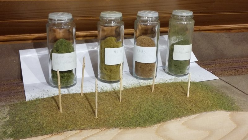 Préparation des sols avec des fibres et des flocages verts et bruns pour représenter le sous-bois |