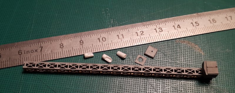 Réalisation du pylône d'éclairage avec du profilé rond Evergreen mis en forme et du treillis métallique en photodécoupe d'origine Vapeur 70. |