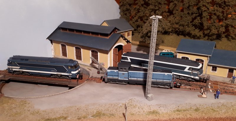 Après une petite séance d'exploitation de 20 minutes, toutes les locomotives sont rentrées à l'annexe pour y passer la nuit Nul besoin d'un plan de voie complexe pour passer des heures de plaisir à faire de l'exploitation ! |