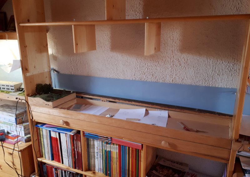 L'opération m'a pris plus de temps que prévu mais maintenant le module est facile d'accès et bien mis en évidence Je gagne un site pour manoeuvrer quelques wagons supplémentaires... |