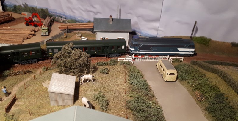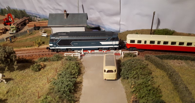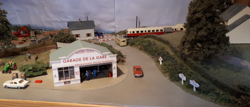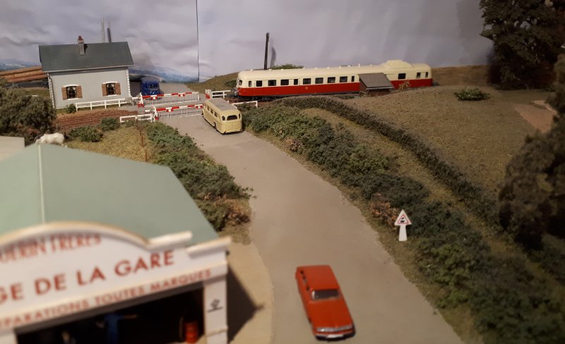 Le passage à niveau avec son PN et le garage automobile |