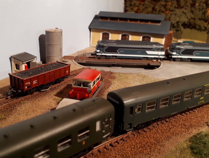 Poursuite de la numérisation de machines avec deux BB63000 Roco Comme souvent le comportement de locomotives analogiques est bien meilleur après le passage en DCC Très bon ralenti, elles vont bien m'aider sur les manoeuvres où il faut un peu plus de puissance qu'avec un locotracteur |
