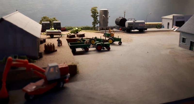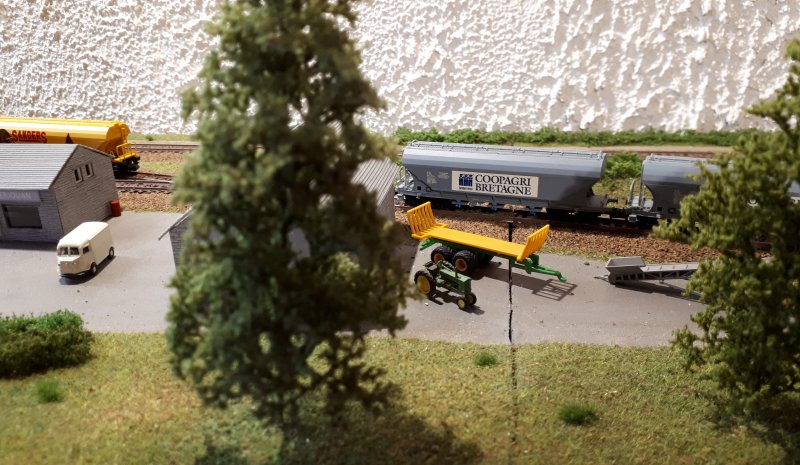 Après une seconde modification du roulement de mes céréaliers deux essieux, je peux maintenant en tracter dix avec mon petit locotracteur Avant, je pouvais les déplacer uniquement cinq par cinq ! |