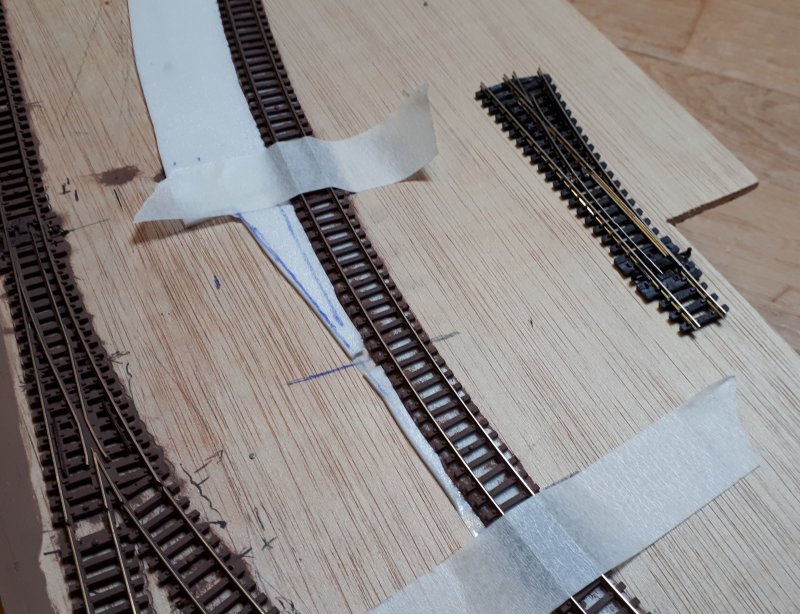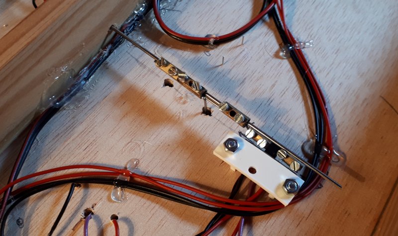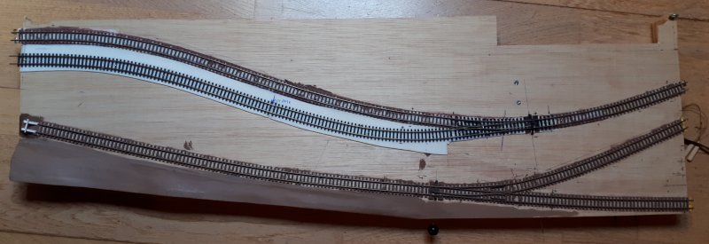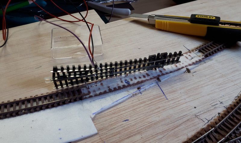 Mise en place et ajout du coupon de la voie d'évitement Il me restera à câbler le coeur avec l'interrupteur et à ajouter la corde à piano de la tirette |