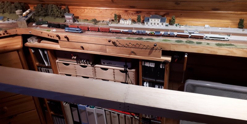 Le module complet et opérationnel avec son extension en double voie vers le futur évitement derrière l'armoire |