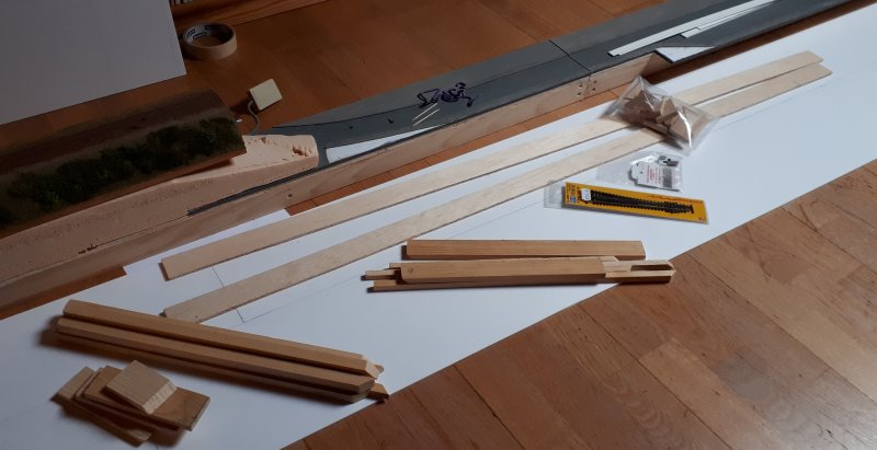 27/12/2022 La première étape de l'extension, raccourcir de 117mm le petit module de pleine voie avant la gare L'avantage du modulaire pour procéder plus simplement à des modifications... |