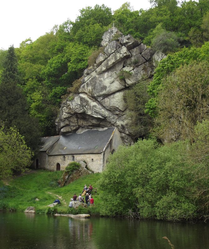 Et quelques centaines de mètres avant le pont se trouve la très pittoresque chapelle de St Gildas adossée à un amas rocheux Je vais essayer de représenter ce site à droite du module le long de l'armoire En définitive ce dernier module, que je voulais simple et rapide à réaliser, se complexifie notablement ! |