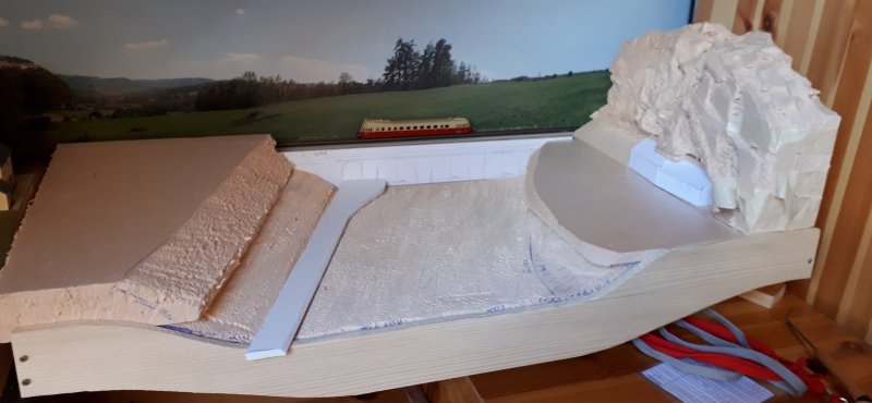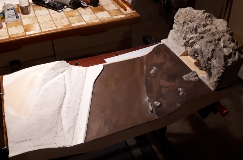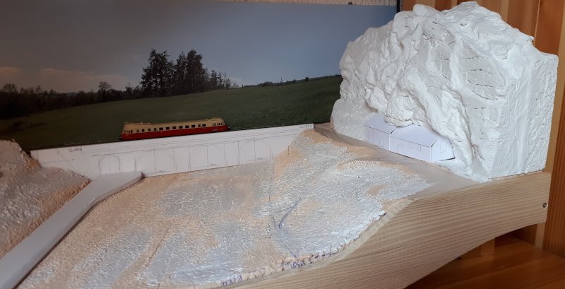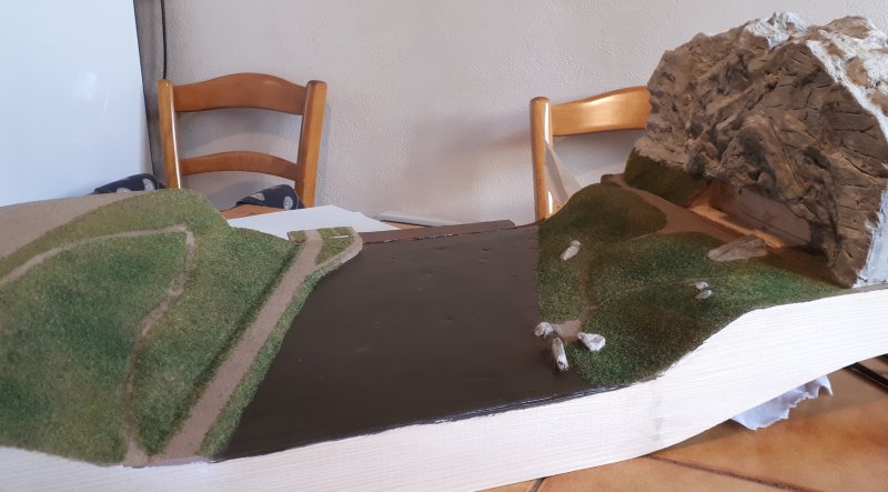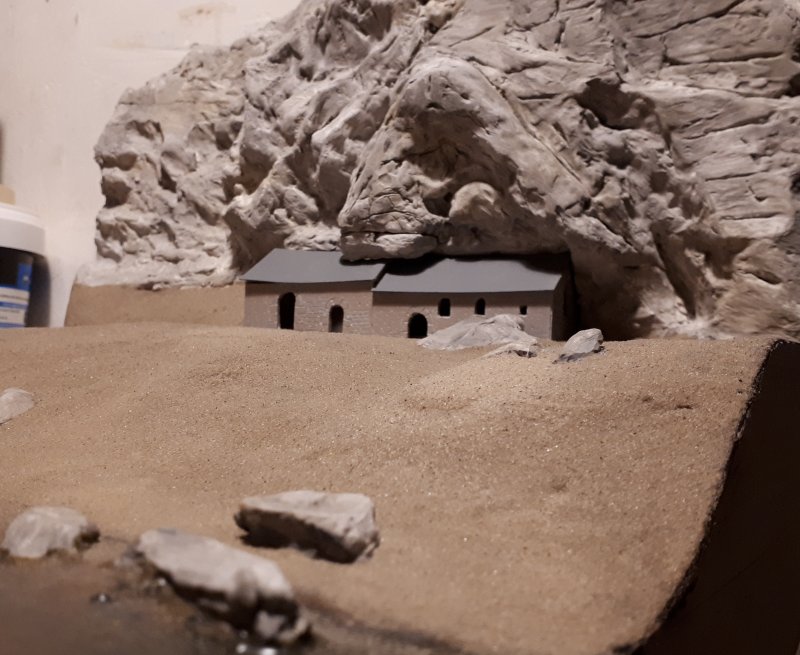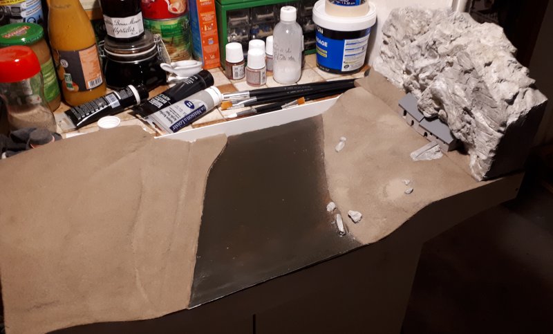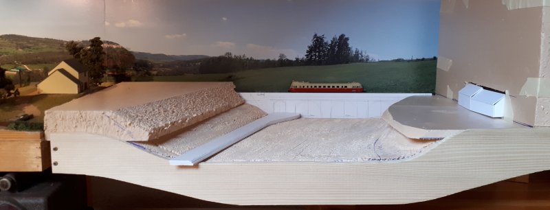 Il me reste à floquer les sols et à ajouter du polystyrène extrudé sur la gauche du module pour figurer la colline du côté du dépôt