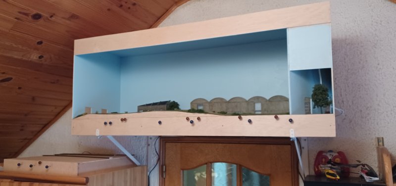 Pour laisser apparent le bâtiment au fond à droite j'ai mis la planche du sépareur en biais |