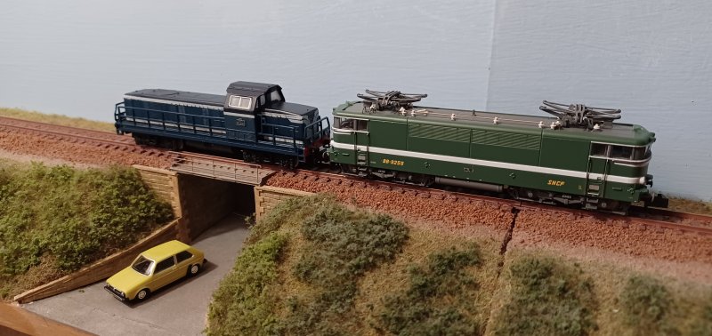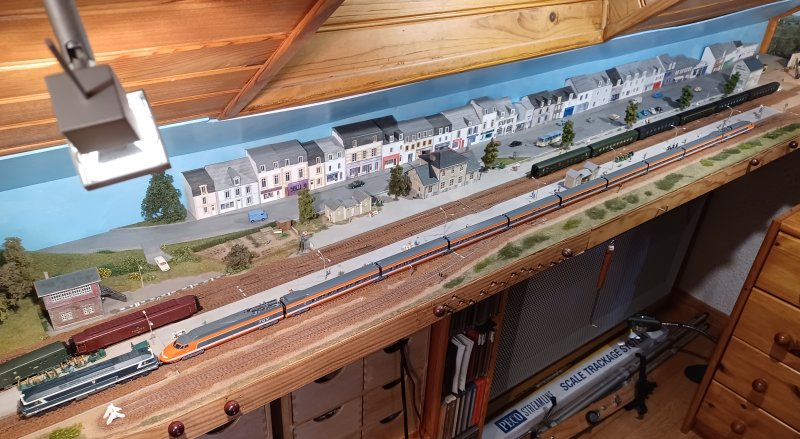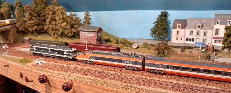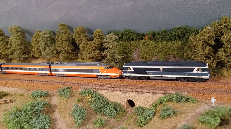 01/03/2026 Avec la sortie annoncée d'un nouveau TGV Sud Est par Kato je vais me laisser tenter par ce beau modèle même si c'est en dehors de mon époque de prédilection L'idéal aurait été un TGV001 mais je pense qu'il ne sera jamais produit de façon industrielle par un fabricant Comme je n'ai pas de caténaire sur mon réseau, et pour faire rouler le TGV de façon plausible, il sera toujours tracté par une CC72000 disposant d'un attelage Scharfenberg comme c'était le cas en vendée entre Nantes et Les Sables d'Olonne dans les années 2000 Pour celà, je vais démotoriser une CC72000 Minitrix pour la tranformer en dummy de façon à ne pas avoir à synchroniser les moteurs des motrices Cette CC72000 me servira aussi pour "tracter" d'autres locomotives électriques de mon parc |